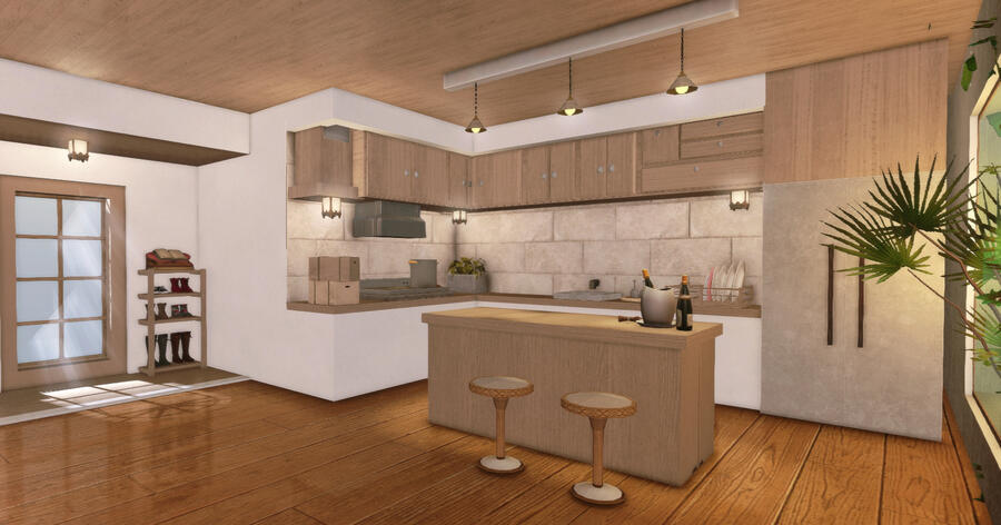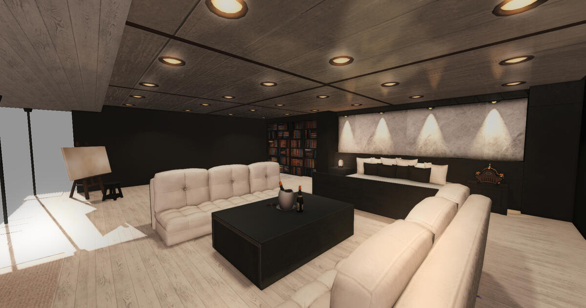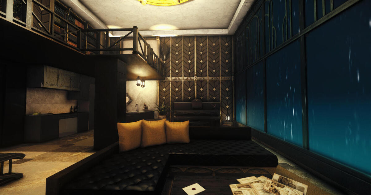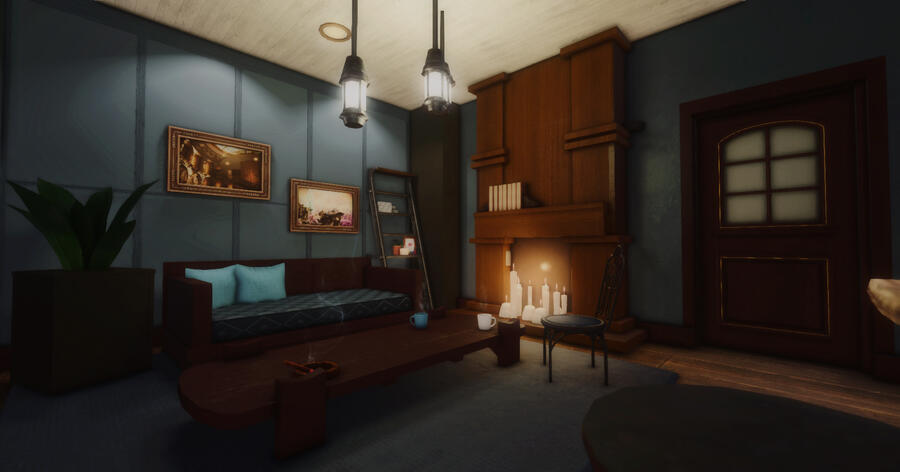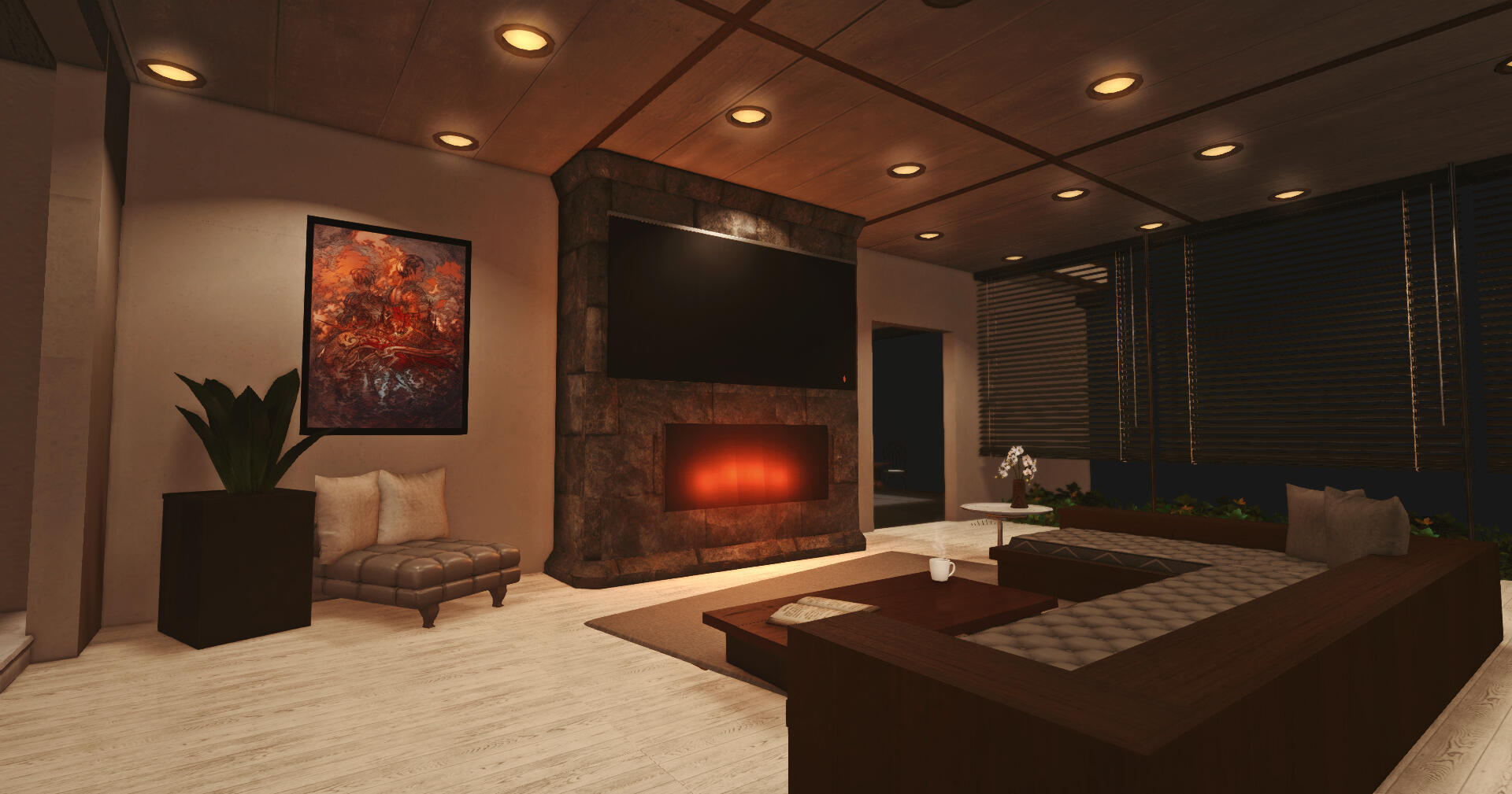 A modern sky rise apartment.Perfect living room/kitchen to host guests in with a moody bedroom and comfortable bathroom to enjoy. Also when will people realize I just name houses based on Gorillaz songs. There's so many.