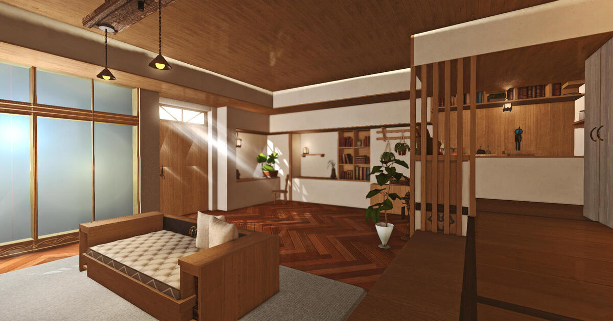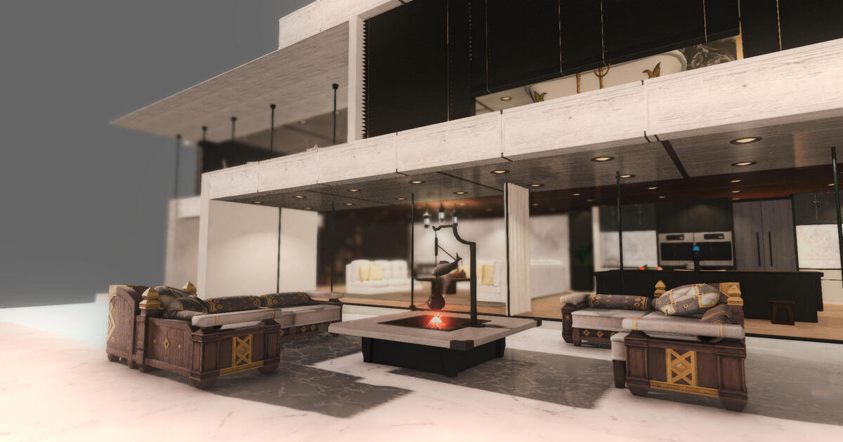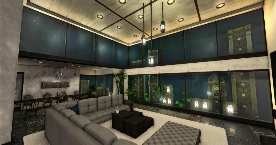 An industrial apartment theme inspired build. This build allows you to live in a gorgeous modern apartment. Able to comfortably fit you and any guests for house parties. Or just you and that one cute Limsa bunny you've been eyeing.