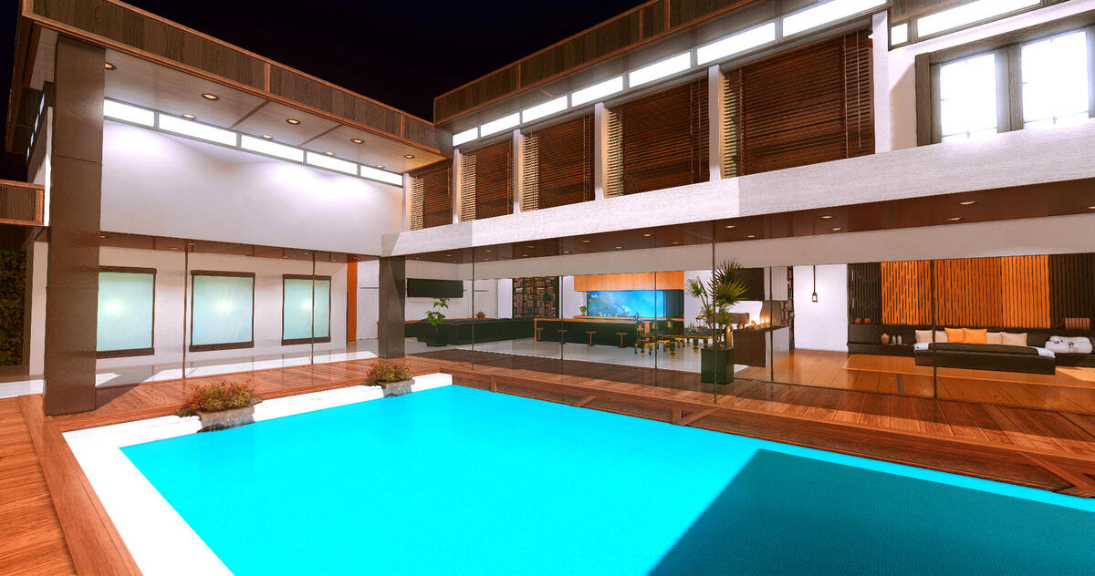 Live in luxury with your own pool, master bedroom, open concept kitchen, dining table,