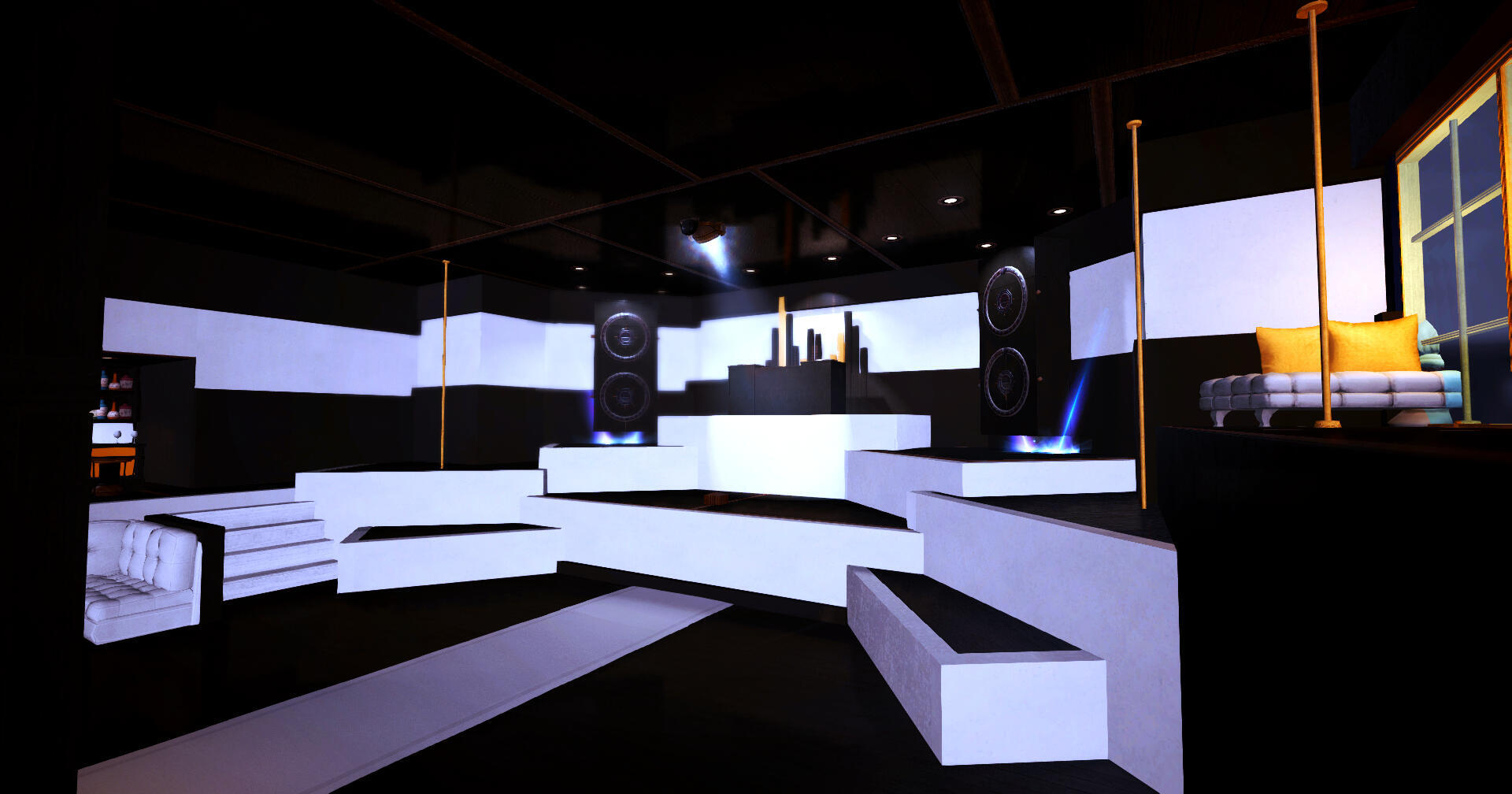 Club Cuddle Bunny features an open airy lobby wherein you can relax and sit down with your group of friends. A stage upstairs allow for events from dancing to date auctions alike. downstairs is a secluded bar and dancefloor for those looking to get away from all the hustle and bustle.